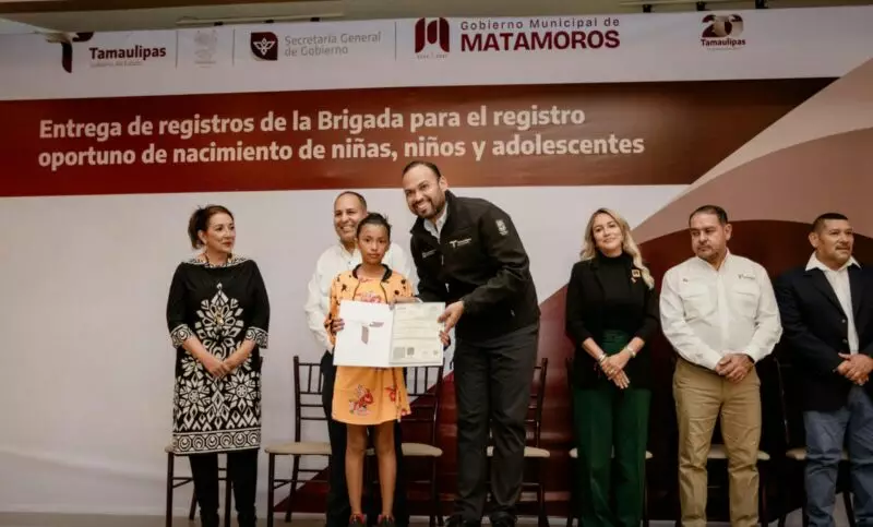 Con el objetivo de garantizar el acceso a los derechos fundamentales de las y los ciudadanos, se llevó a cabo en Matamoros, la entrega simbólica de registros de nacimiento como parte de la Brigada de Registro Civil para el Registro Oportuno de Nacimiento de Niñas, Niños, Adolescentes y Adultos Mayores.