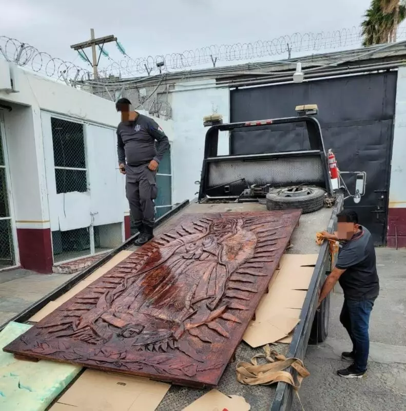Resultado de un trabajo artesanal realizado por personas privadas de la libertad (PPLs) en el Centro de Ejecución de Sanciones (CEDES) de Matamoros, se realizó la donación de una imagen de la Virgen de Guadalupe labrada en madera a la Diócesis de Matamoros.