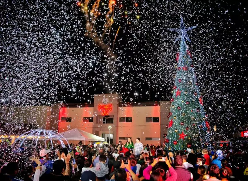 Acompañada por sus hijos, Patty Chío realizó el encendido del pino, junto a la directora del Sistema DIF El Mante Érika Torres Velázquez y el representante del Gobernador Américo Villarreal Anaya, Felipe Alberto Salinas Villasana, representante de la Secretaría General de Gobierno en la zona cañera. Además de Síndicos y regidores .