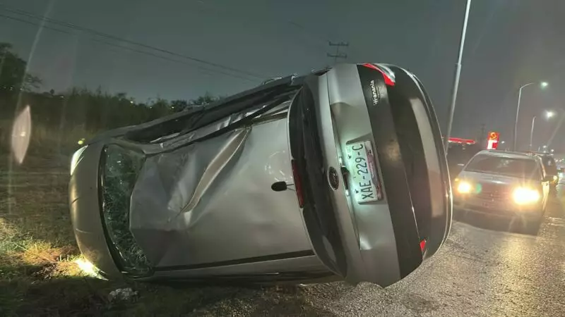Leobardo, quien conducía un Ford Focus gris modelo 2016, circulaba de sur a norte cuando perdió el control del automóvil. El impacto fue tan fuerte que el vehículo se estrelló contra un montón de tierra a un costado de la vialidad, provocando la volcadura del mismo.