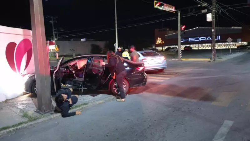 Un hombre y una mujer resultaron lesionados luego de que el vehículo en el que viajaban fuera impactado por un conductor en estado de ebriedad en un céntrico crucero de Nuevo Laredo.