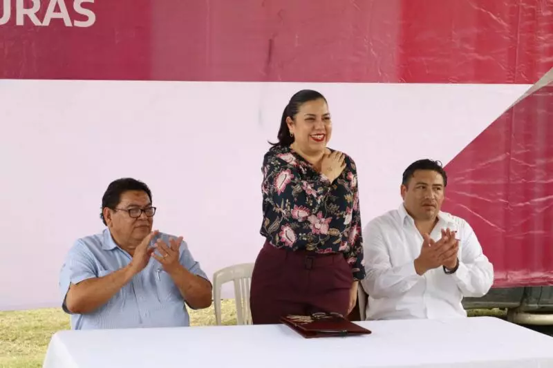Al pie de la sierra de cucharas, la Presidenta Municipal de El Mante, participó en El Abra en la entrega de escrituras y tinacos que realizó el ITAVU, junto al delegado regional del organismo Fernando Castelán y el diputado local Alberto Moctezuma.
