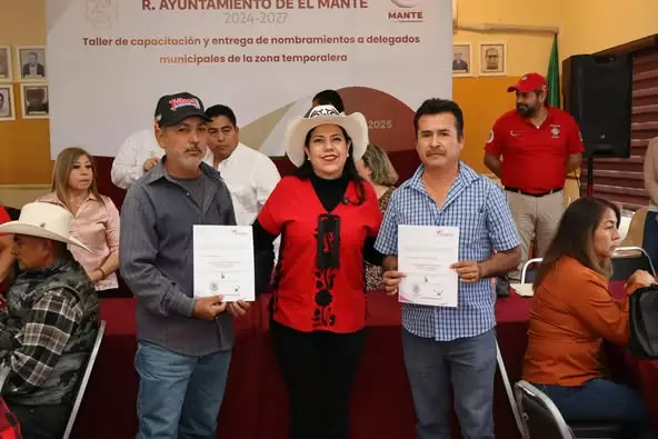 Previo a un taller de capacitación encabezado por autoridades municipales, la Presidenta Municipal Patty Chío hizo entrega de nombramientos a delegados y sub delegados en la zona temporalera.
