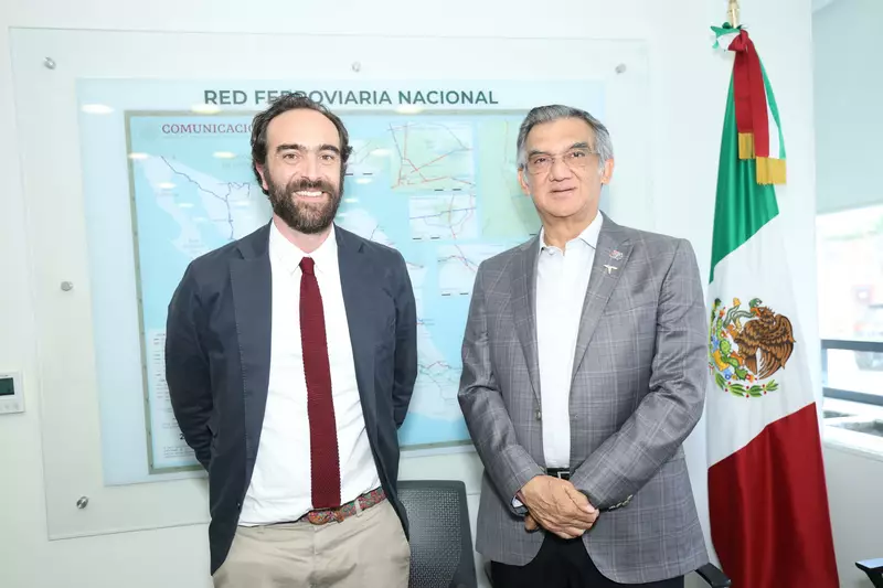 El gobernador Américo Villarreal Anaya y el titular de la Agencia Reguladora de Transporte Ferroviario, Andrés Lajous Loaeza, sostuvieron una reunión de trabajo donde se revisaron las diferentes opciones de las rutas ferroviarias que el gobierno de la presidenta Claudia Sheinbaum Pardo construirá en breve en Tamaulipas.