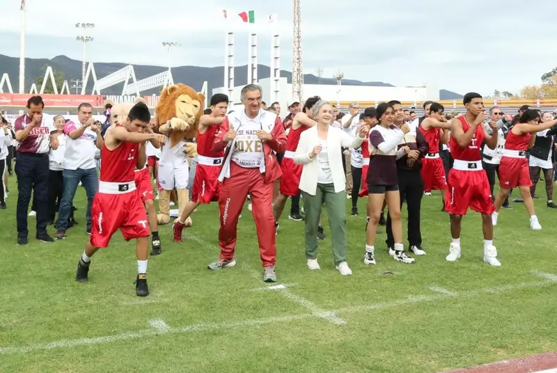 Tamaulipas se sumó con éxito a la Clase Nacional de Boxeo «Por la paz y contra las adicciones”, con una participación multitudinaria encabezada por el gobernador Américo Villarreal Anaya y la presidenta del DIF Estatal, María de Villarreal, siguiendo en todo momento el evento presidido por la presidenta Claudia Sheinbaum, en el Zócalo de la Ciudad de México.