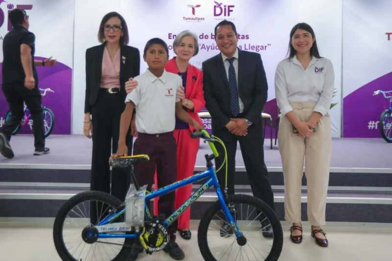 Con el propósito de garantizar el bienestar, reducir el ausentismo y la deserción escolar de niñas y niños en comunidades de atención prioritaria, el Gobierno de Tamaulipas, a través del Sistema DIF Tamaulipas, presidido por la doctora María de Villarreal, y la Fundación Telmex Telcel, realizaron la entrega de 100 bicicletas a igual número de beneficiarios de siete municipios del estado.