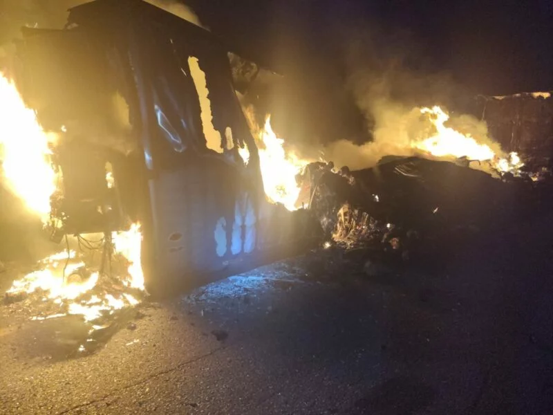 Gracias a su rápida reacción, logró desenganchar el remolque refrigerado que transportaba carne, evitando que el incendio alcanzara toda la carga.