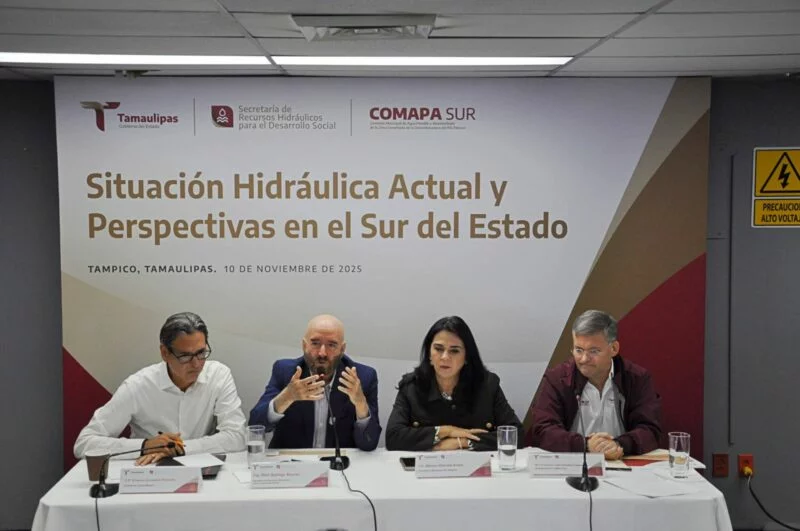 Con el objetivo de fortalecer la atención integral a la problemática de los socavones en la zona conurbada del sur de Tamaulipas, se llevó a cabo una reunión de coordinación encabezada por el secretario de Recursos Hidráulicos para el Desarrollo Social, Raúl Quiroga Álvarez, acompañado por el gerente general de Comapa Sur, Francisco González Casanova, y los alcaldes de Tampico, Mónica Villarreal, y de Ciudad Madero, Erasmo González Robledo, así como representantes de las fuerzas armadas y del sector industrial.