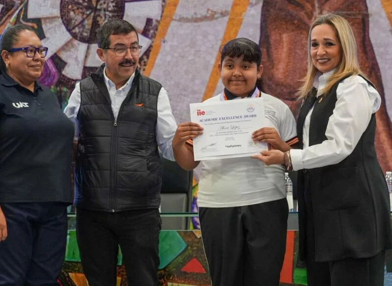 De manera especial, se realizó la entrega de un reconocimiento a la estudiante López Arcos Alexa Valentina, del grupo Junior 5, otorgado por el Instituto Nacional de la Educación, por haber obtenido puntaje perfecto durante el ciclo escolar 2024–2025 en la certificación TOEFL Primary, destacando su desempeño académico sobresaliente.