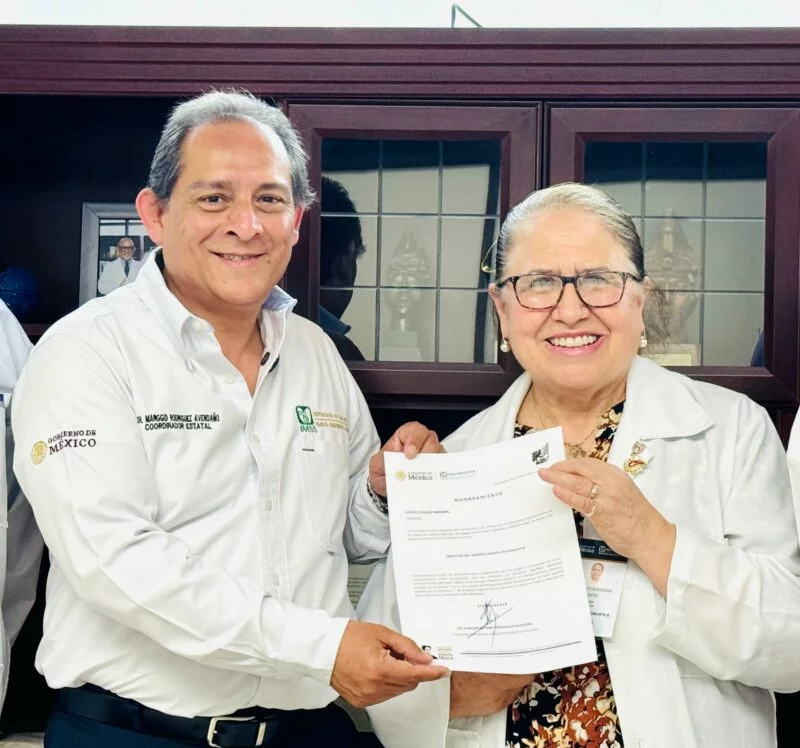 En la Dirección del propio Hospital Infantil de Tamaulipas, el Coordinador Estatal de IMSS-Bienestar en el Estado, Dr. Marggid Antonio Rodríguez Avendaño, acompañado del Dr. José Luis Garza Ruíz, Titular de Atención a la Salud, del Jefe de Personal de la Coordinación, el Lic. José Luis Vázquez de la Cruz, y el Dr. Ariel Mercado Cárdenas, Jefe del Departamento de Educación e Investigación, entregaron el nombramiento como nueva Directora de este Prestigiado Nosocomio, a la Dra. Judith Cornejo Barrera, quien es Pediatra, con Subespecialidad en Endocrinología, que además de ser fundadora de dicho Nosocomio, fue también Jefa de Investigación y una reconocida y muy bien calificada Investigadora, enfocando por muchos años esta labor al tema de la Diabetes Infantil.