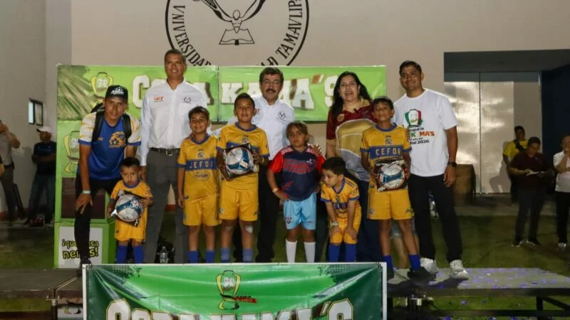 Ciudad Mante, Tamaulipas.- En el marco del fortalecimiento de la vinculación social y el impulso a la formación integral de la niñez y juventud, el rector de la Universidad Autónoma de Tamaulipas (UAT), Dámaso Anaya Alvarado, inauguró la Copa Kama’s de futbol la noche de este viernes 17 de abril en las instalaciones del Gimnasio Multidisciplinario Mante, espacio universitario que fungió como sede del evento.