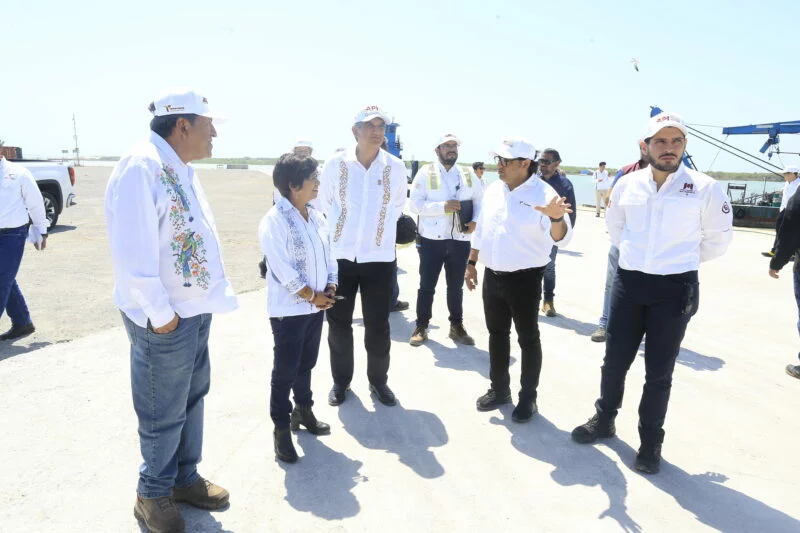 En la zona del muelle, supervisaron los trabajos que realiza la draga Montebello ADR-18, la cual cuenta con un tubo de 2 kilómetros de extensión, de 24 pulgadas de diámetro, con una capacidad de bombeo de 7 mil metros cúbicos por turno.