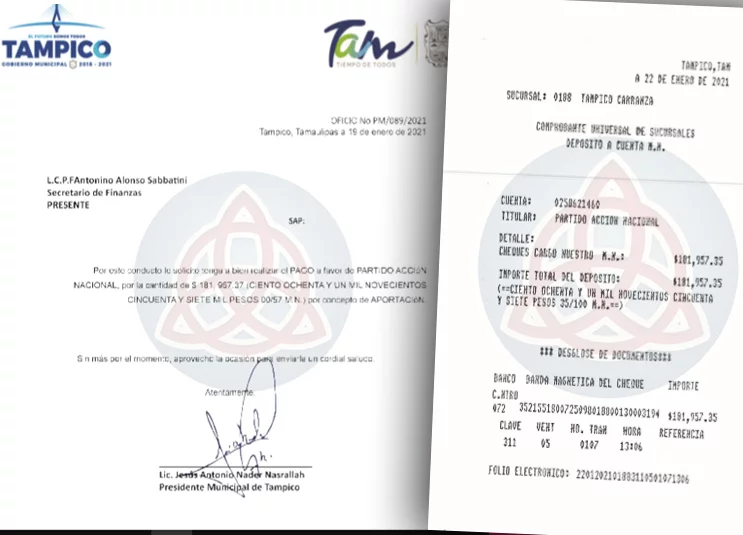 Tampico, Tamps.- Una revisión exhaustiva de documentos, solicitudes firmadas y comprobantes bancarios obtenidos por Noticias PC expone una secuencia administrativa que vincula decisiones tomadas desde la presidencia municipal de Tampico con una aportación económica dirigida al Partido Acción Nacional (PAN) en enero de 2021, en un contexto político marcado por la búsqueda de continuidad en el cargo.