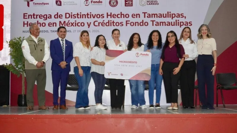 Nuevo Laredo, Tamaulipas.– Con el propósito de fortalecer el desarrollo de las micro, pequeñas y medianas empresas en la región, la secretaria de Economía, Ninfa Cantú Deándar, encabezó la entrega de distintivos “Hecho en Tamaulipas” y “Hecho en México”, así como de créditos del Fondo Tamaulipas, en un evento que reunió a líderes empresariales y representantes de instituciones de educación superior del municipio.